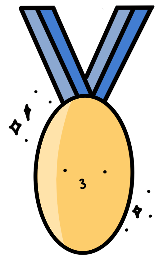 Players will traverse across the board to try and accumulate as many medals as they can by strategically choosing where they want to move. Upon reaching 20 medals, players will try to get to the “Trophy Space” in which they will be able to trade 20 medals for one trophy. After 10 Turns, the person with the most trophies will be crowned the victor! In the result of a tie, the tiebreaker will be decided by who has the most medals at the end of the 10 turns.